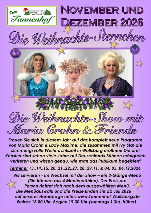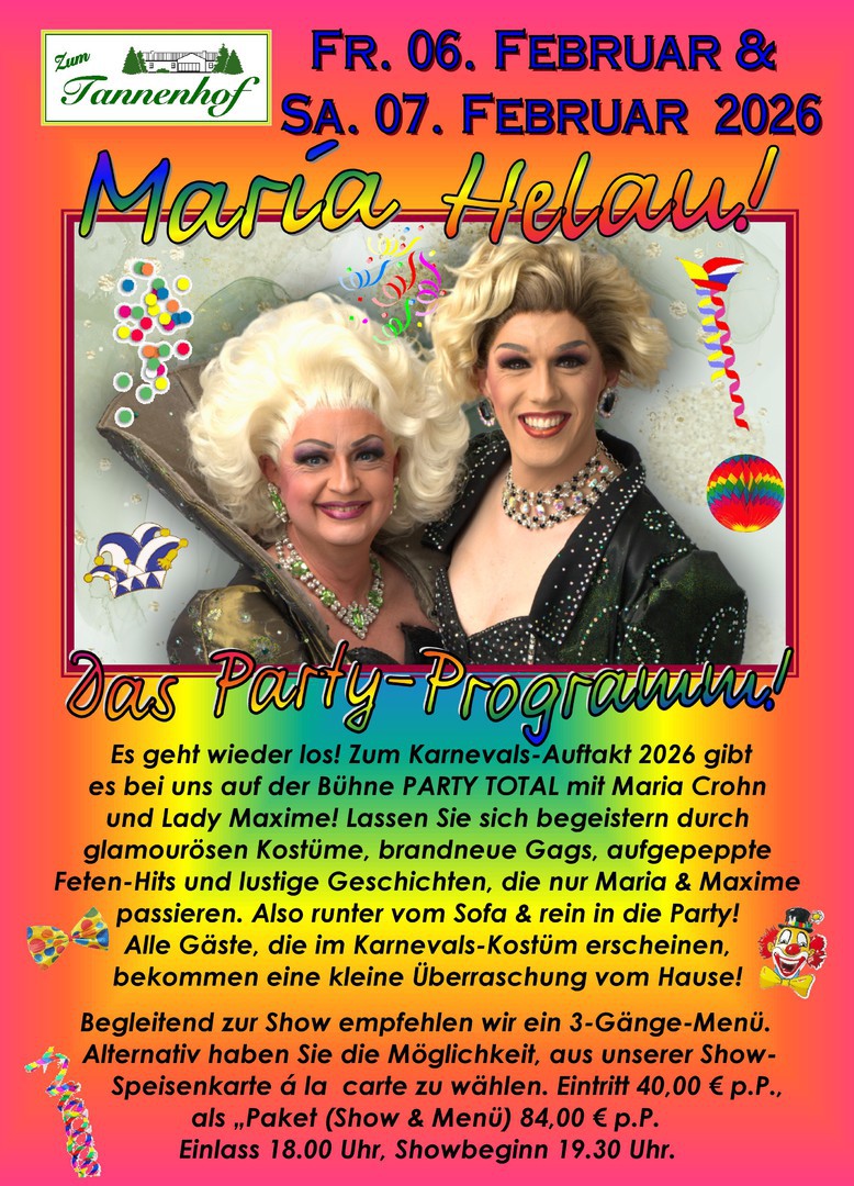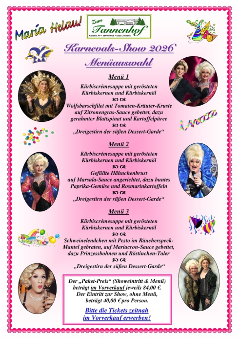 Unser TIPP: Buchen Sie für Ihre Feier Ihre eigene Dinner-Varieté-Show! Termine nach Vereinbarung.