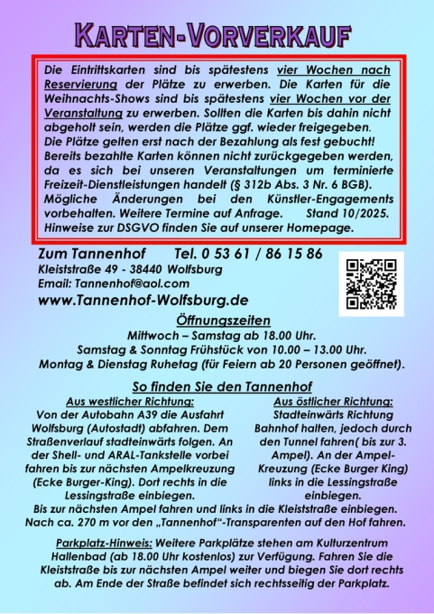 Bitte die Tickets unbedingt im Vorverkauf erwerben!